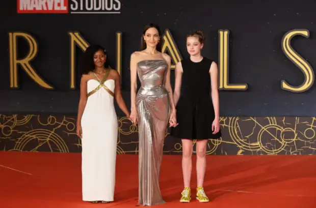 На недавних премьерах нашумевшего фильма «Вечные» Шайло впервые увидели с легким макияжем и в элегантных платьях. Кстати, два из которых, бежевое и черно-белое, были перешиты из старых платьев Анджелины. В одном из переделанных платьев звезды была еще и ее дочь Захара. Это еще раз подчеркивает демократичность Джоли.